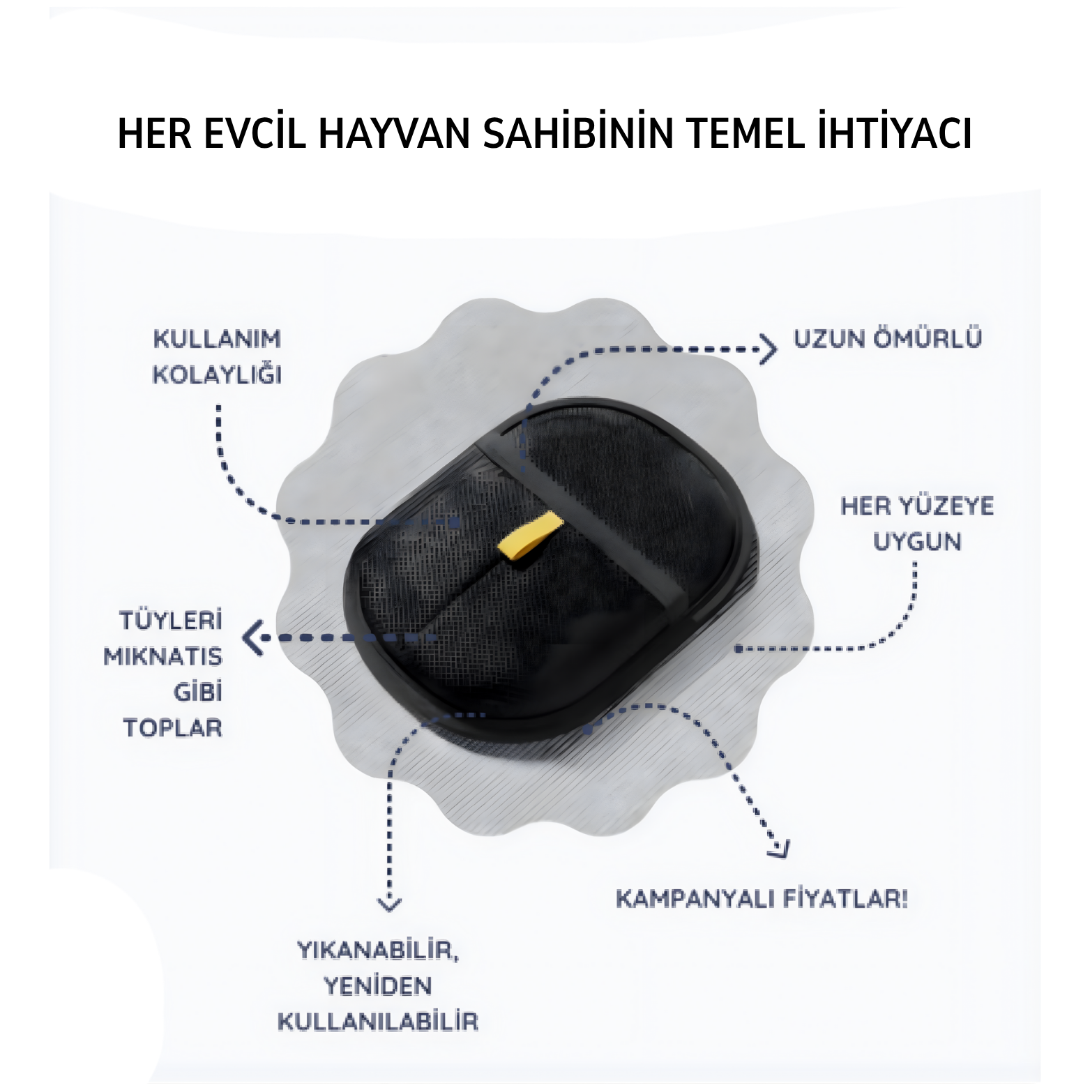 Patify TüySavar™, özel dokusu sayesinde evcil dostunuzun dökülen tüylerini mıknatıs gibi toplar. Koltuk, kıyafet, yatak ya da araba koltuğu fark etmez; her yüzeyde etkili olur ve kumaşlara zarar vermez. Yıkanabilir ve defalarca kullanılabilir yapısıyla hem pratik hem de ekonomik bir çözümdür.